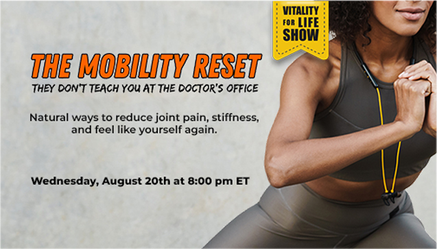 Check out the replay of this month’s Vitality for Life Show: The Mobility Reset They Don’t Teach You at the Doctor’s Office.