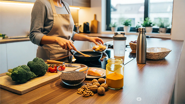 Add omega-3 rich foods (like chia seeds, walnuts, or salmon) and anti-inflammatory herbs like turmeric or ginger. - Hydration + Electrolytes