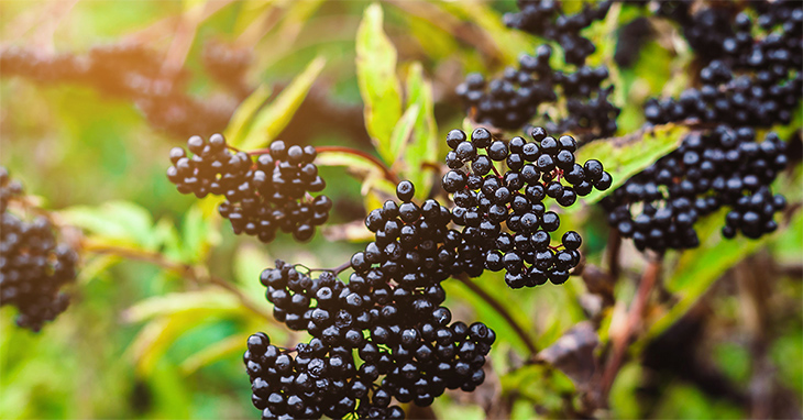 Elderberry is rich in anthocyanins, the compounds that give the fruit its dark black-purple color and are a strong antioxidant with anti-inflammatory effects.